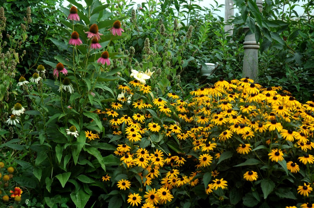 Coneflower. A staple. once again choose a space where they can spread and just go for it. Fantastic native flower and grows like a weed. All my wild garden visitors love it. Butterflies, birds and bees are all attracted to the coneflower garden.