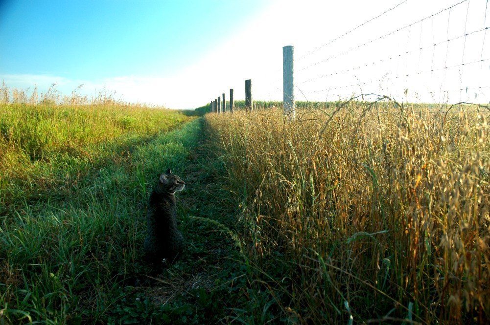 Thing Two is admiring Our Johns fence. It has kept the deer and coyotes out so far.