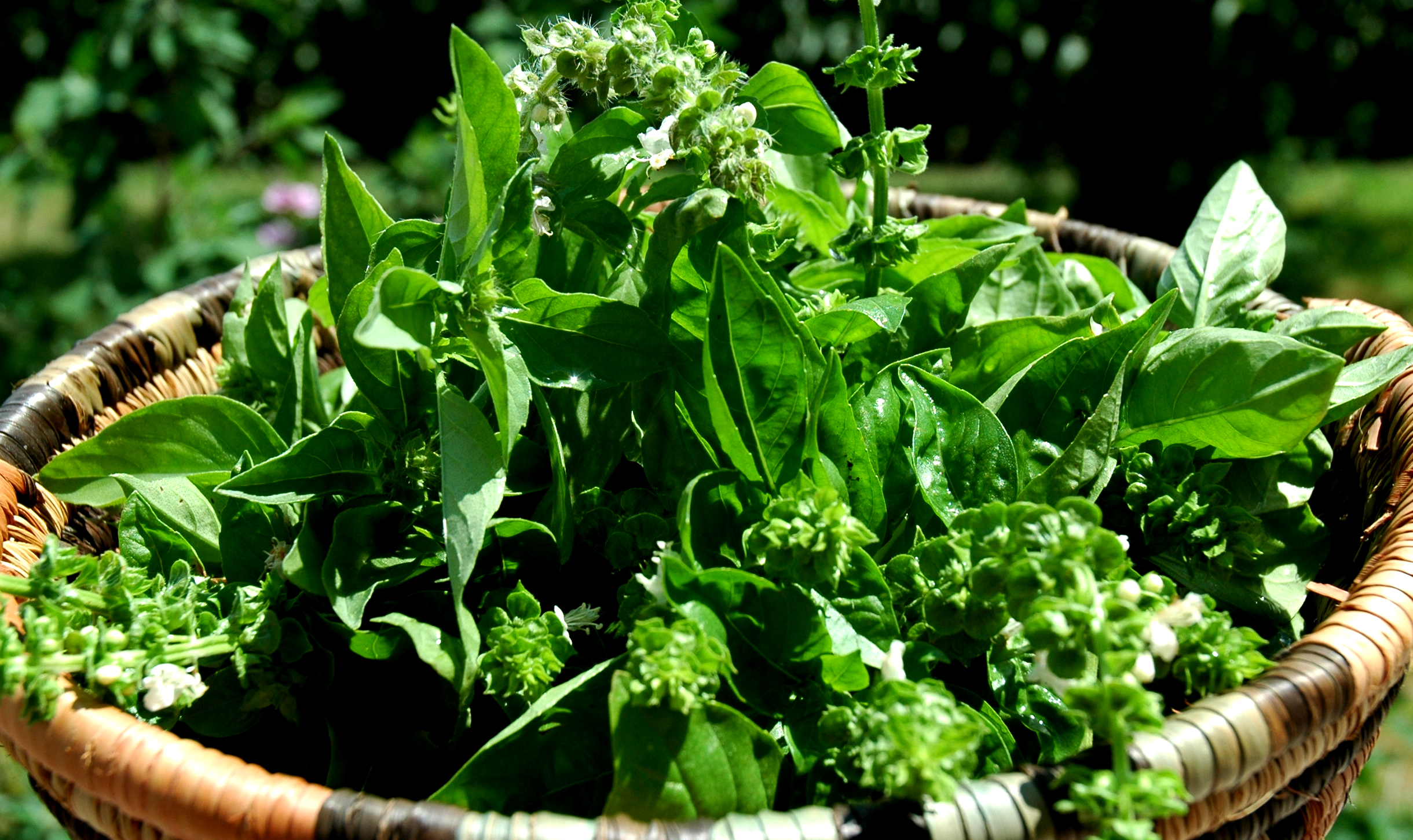 If you don’t have a garden, you can grow basil in a big pot on your window sill in a sheltered warm spot. As long as you croon to it every morning and water it TWICE a day in the summer. Feed it once a week with a good natural fish fertiliser. I LOVE basil! Can you tell?