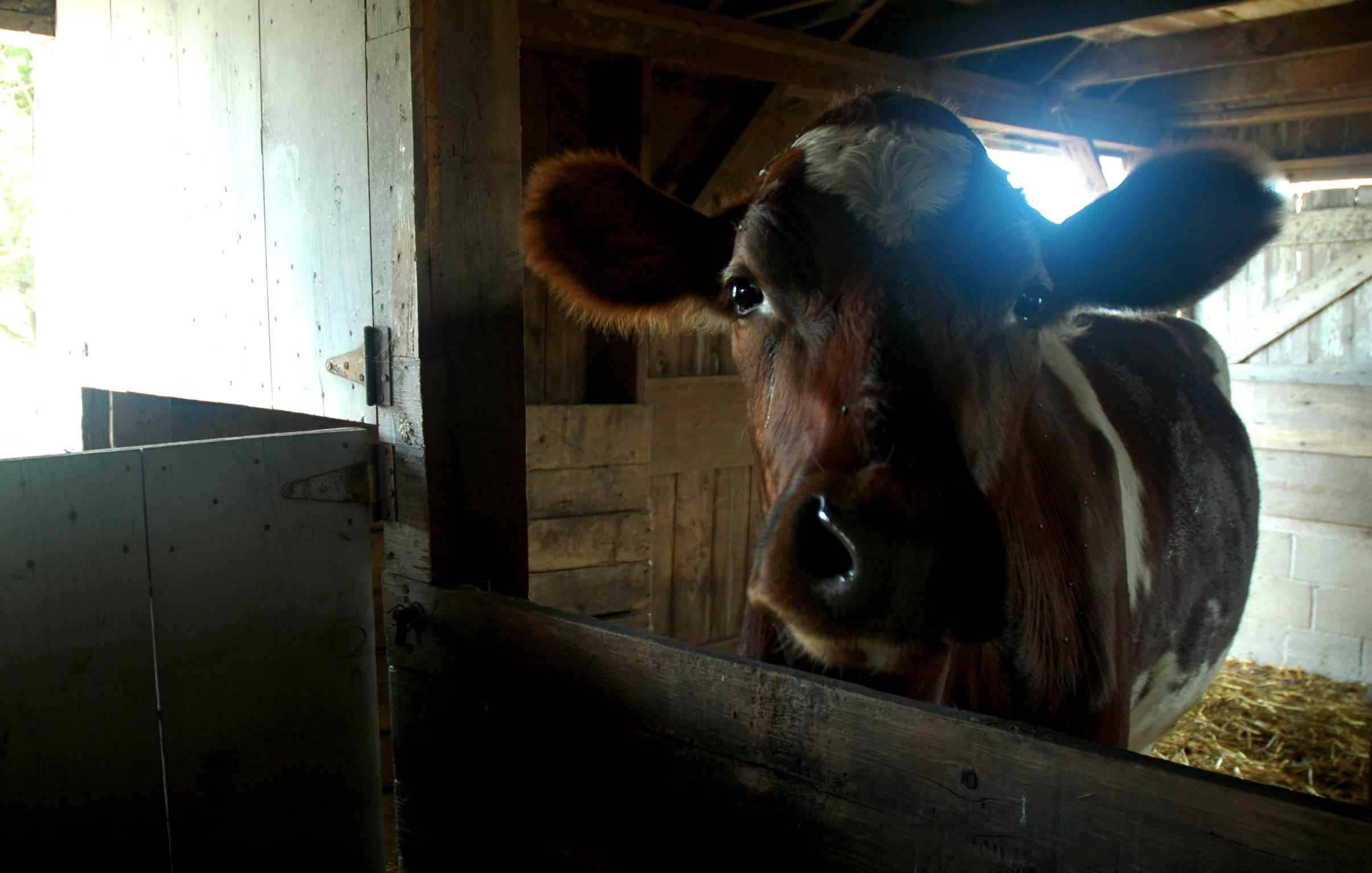 This morning early, I took the dogs for a walk (the two cats who come along think they are taking us for a walk) and checked the fences. In the barn, I fed Daisy( dairy cow, who I really hope is pregnant) some of the new grass hay, she looked at  me scathingly and said I wouldn’t even waste spit on that, where is the good stuff. And then watched longingly as I fed the sheep the same hay.  Mama and Hairy (mama and papa sheep) were not having any of it either. Then they all turned to watch the Baby Bobby as he (not aware of the mutiny in the making) munched into his hay and stood looking back at them chewing and blinking benignly.  He will eat anything which is a good thing as he is the beef steer.
