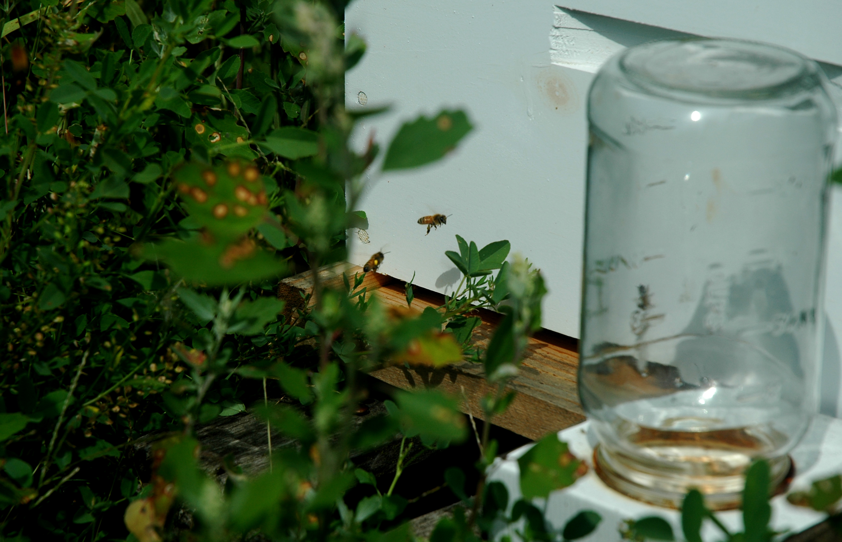 Soon I will set up the last hive for harvesting the honey. I put a board outfitted with a kind of maze on one side, between the supers. In the cold evenings the bees move down the maze to cuddle together and keep warm. Then they cannot get back up again in the morning. So I can steal that honey unmolested.