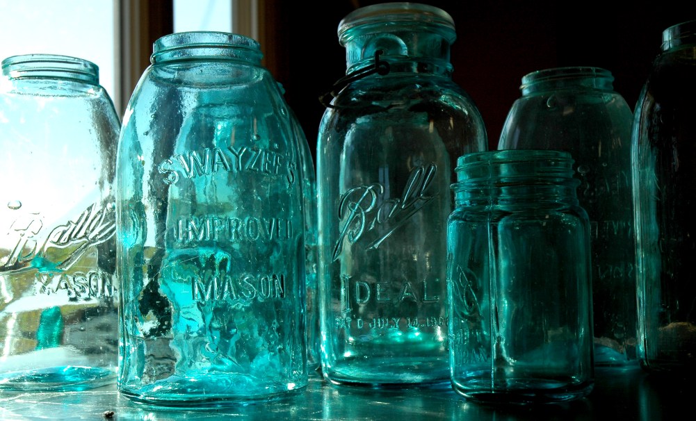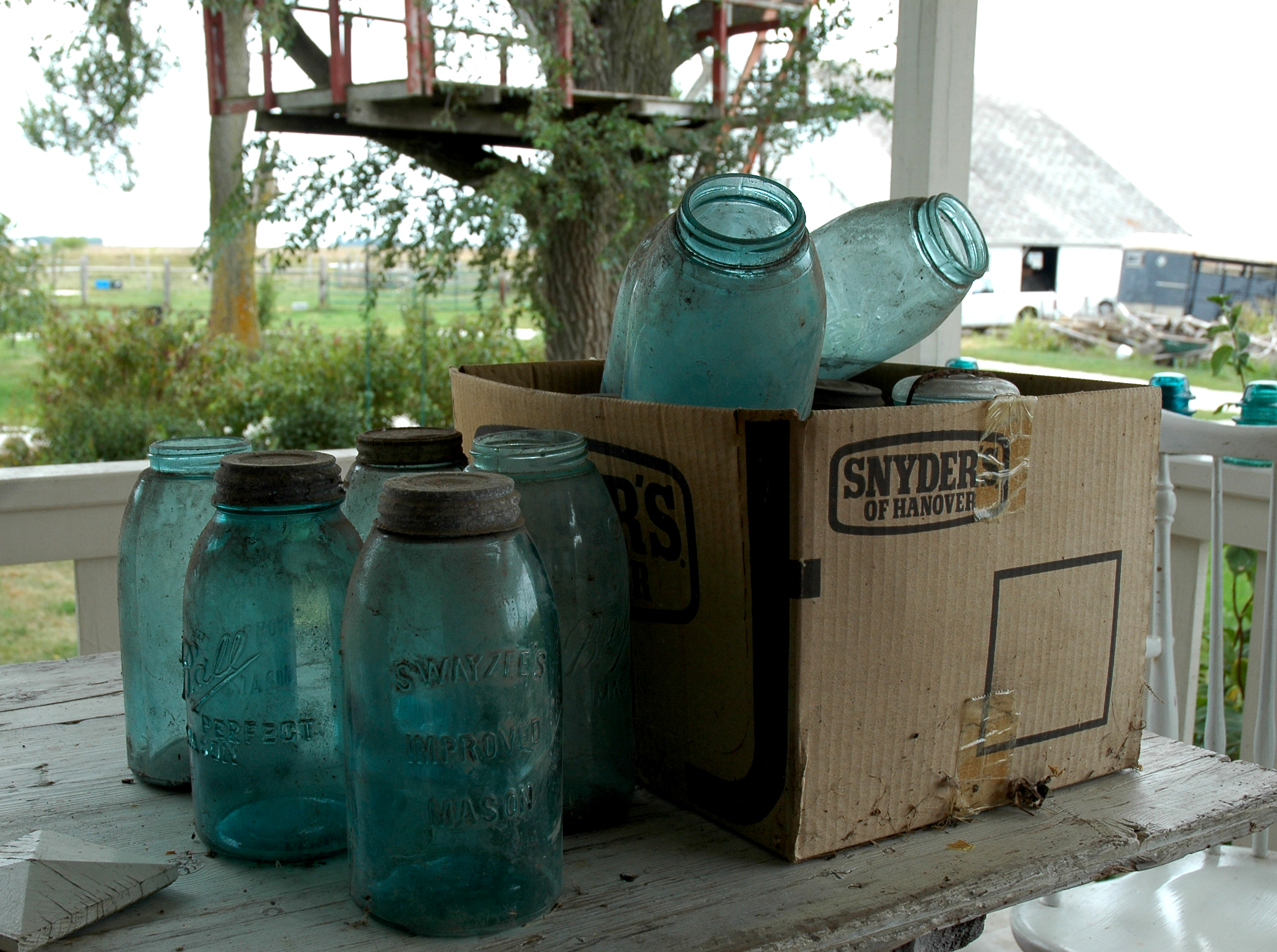 The sand hill Ball used to make the blue glass (Hoosier Slide Sand) was completely mined out by 1937. This particular sand on the shores of Lake Michigan was lower in iron than other sand, resulting in this intense blue cast. No-one seems to know why this happened right there and it has not been found again anywhere else in the States, as far as I can work out. This is why these particular Ball jars were only made for a limited time. So it is safe to assume that these jars in their dusty old cardboard boxes, put into the barn by Johns grandfather are at least 80 – 100 years old. Some are even older as I can see the marks of being hand blown.