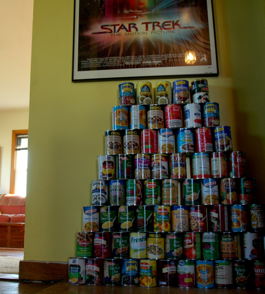 I have limited pantry space so here is how I store my cans and yes I do use them. There is a knack to getting one out and popping another back into the gap before the whole thing falls over.
