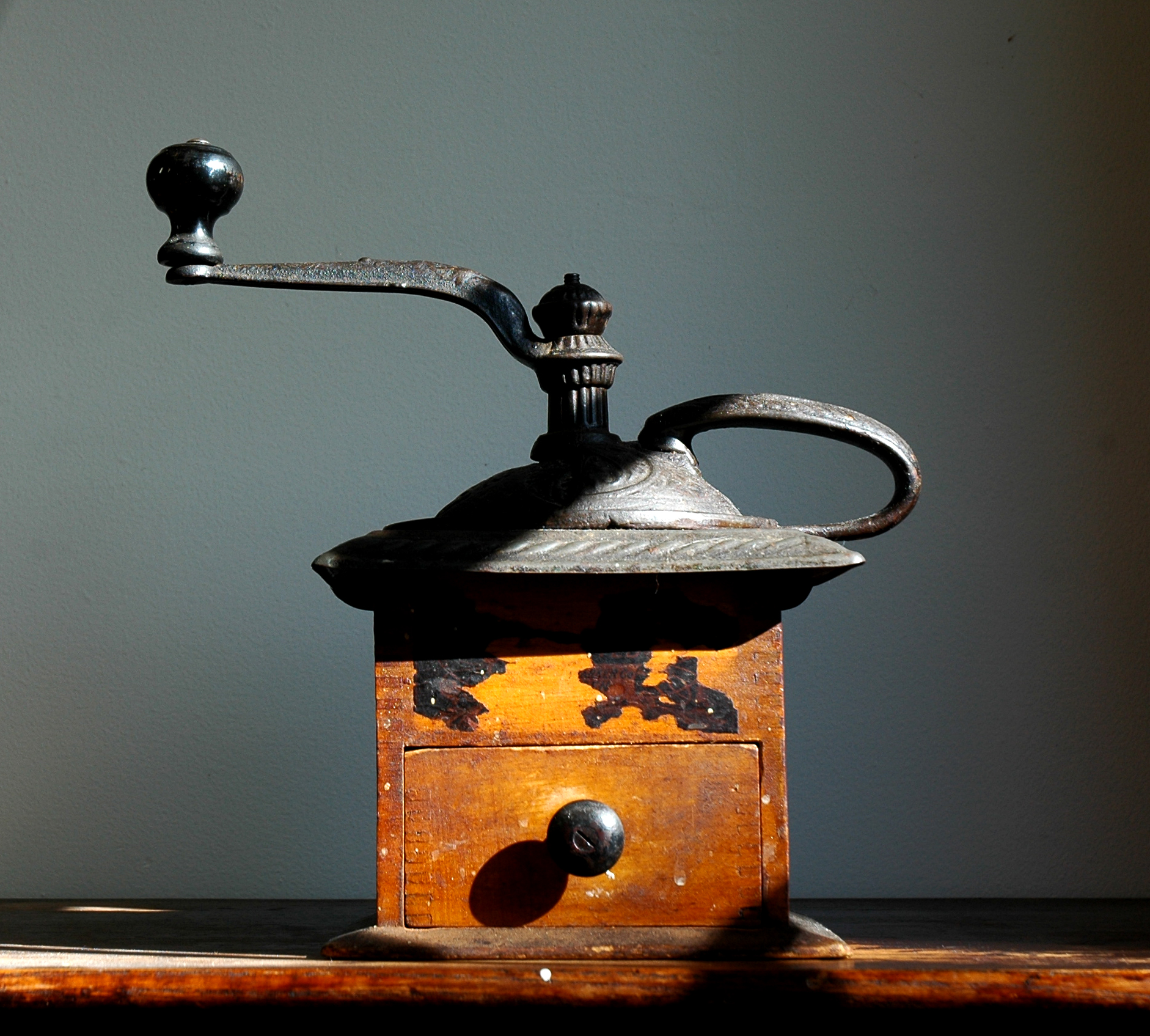 This is Johns great-grandmothers coffee grinder. We use it every morning to grind our coffee. It works like a charm. Wish it could talk. It looks like it could talk though if we animated it!
