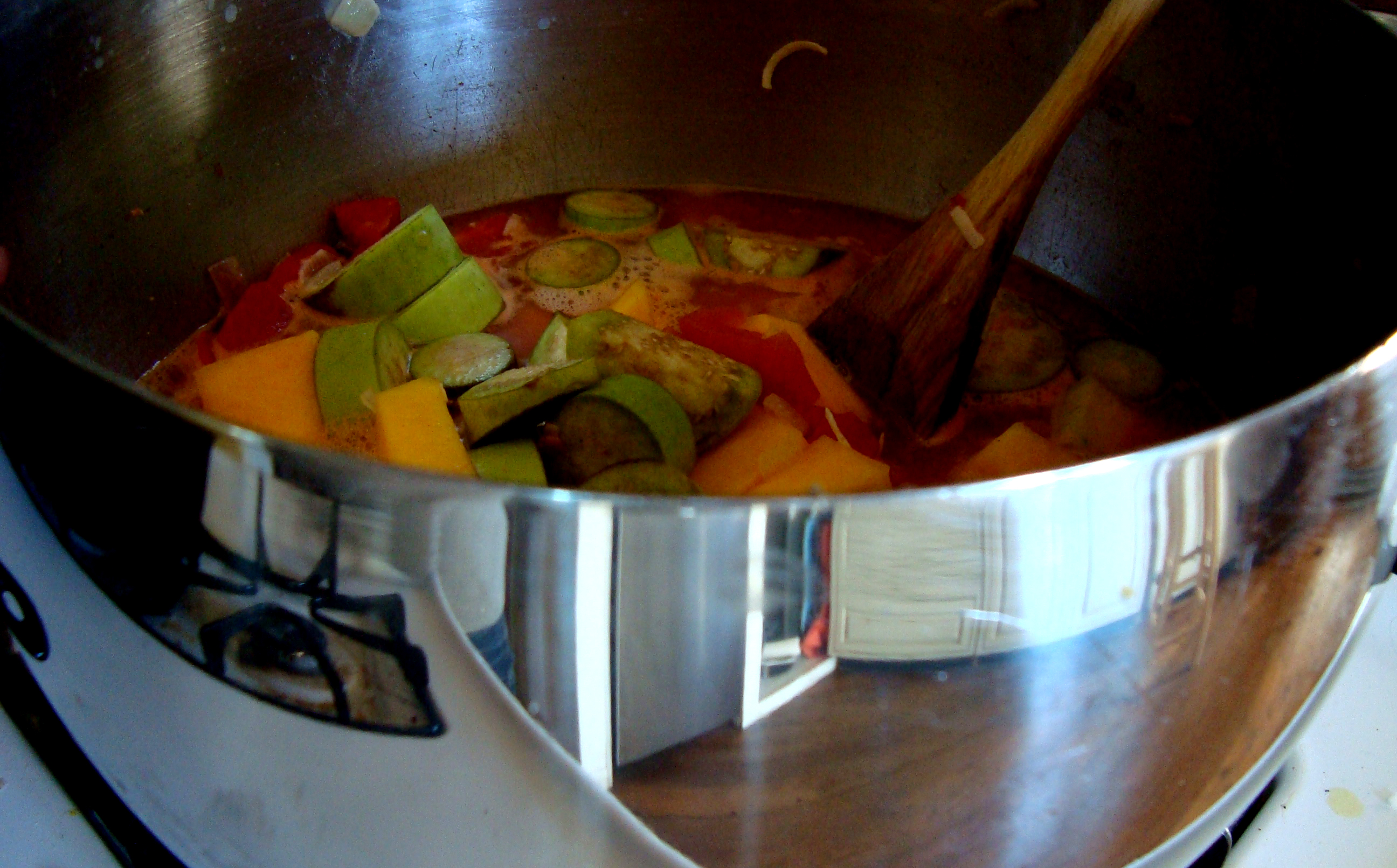 Curry is one of my favourites in my kitchen because I can start it and leave it to cook while I go and work outside.  Our winters (in the midwest) when they come,  get very very cold (well very very cold for me anyway compared to my upbringing on a New Zealand beach) so I have to be very very prepared. We heat the house with a cast iron wood burning firebox in the big room and I will literally put a curry or a stew on top and it will cook quietly on the fire for the afternoon. Though not yet. We have to clean the summer birds nests out of the chimney first!!