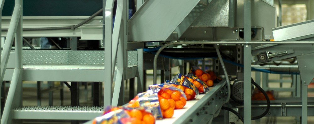 This packhouse is  400,000 square feet. Each fruit drops into its own individual cup and travels along the grader.
