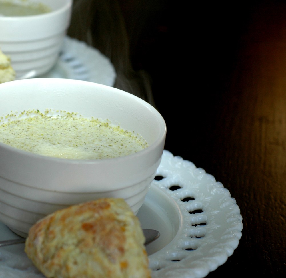 I love cream of broccoli soup and the addition of the scone sounds perfect to me. Though perhaps a few bacon bits on top of the soup? 🙂