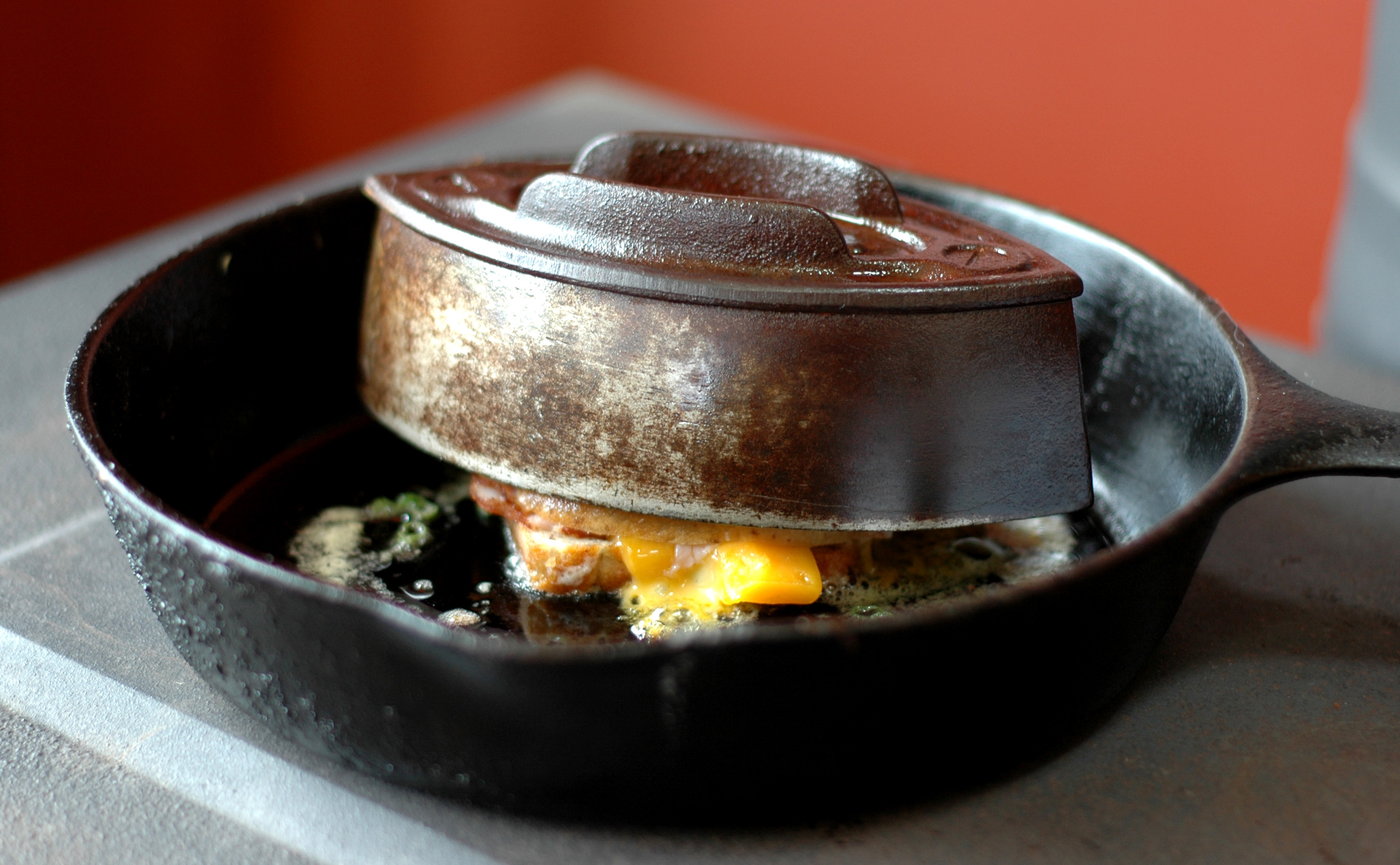 I have to tell you that that is amongst the best, or probably is THE best, toasted sandwich that I have ever seen. The hardware is from a nightmare, but shit, it works. Living in France I have yet to eat a proper, or as I imagine proper should be, croque monsieur. My guess is that you should start exporting flatirons to France. Just love the pictures.