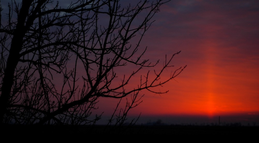 1. Oooh! A sun pillar! That is a gorgeous photo. A few years ago, when the weather was bitterly cold, we would see sun pillars on an almost daily basis throughout the winter.