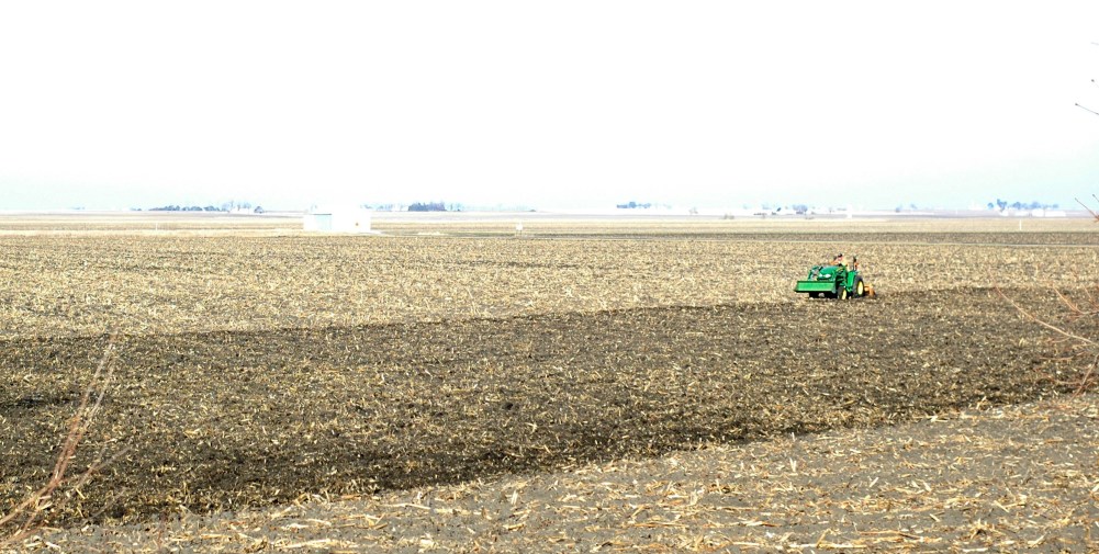 The water in the swimming pool is freezing.  I know this has nothing to do with anything but I like the image! Yesterday was a little warmer so it was a good day to  get back to basics, go on the walkabout and bring you all up to date on the complete lack of events on the farmy.  The fields are empty.   This is John on our little tractor reclaiming another three acres from the high fructose corn syrup corn field, this will go into good grass, clover and alfalfa.  Some we will make into hay with the old/new haybaler.  The world is taking on that  early winter sepia look, which will slowly morph into the late winter sepia look.