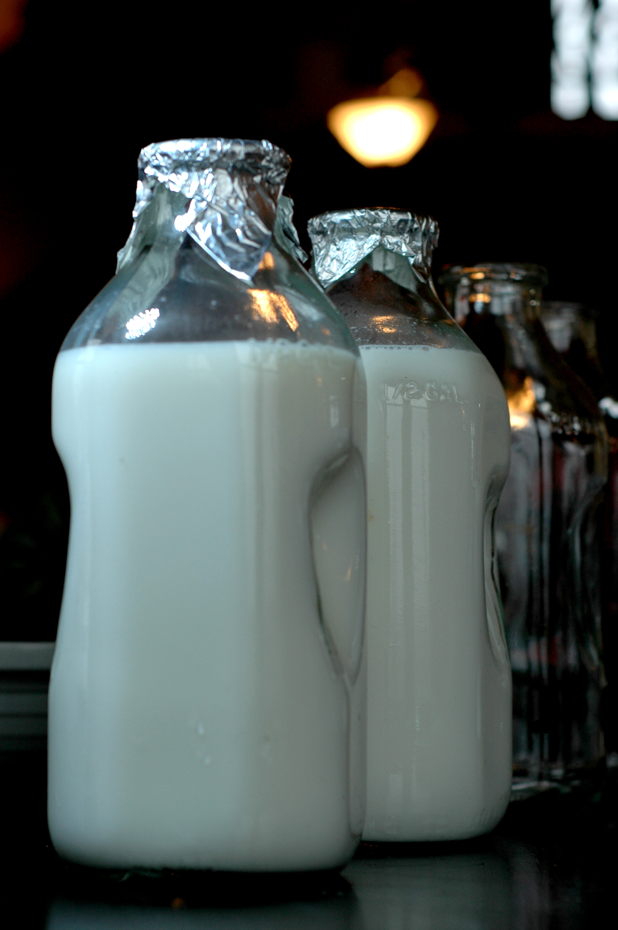 These 1950’s half gallon milk bottles were what I found in California. I pretended to buy them for Our John, but he pretended to buy me a hay bailer so I think that is fair! There are six bottles AND a crate. They already have milk in them. Perfect for what lies ahead.