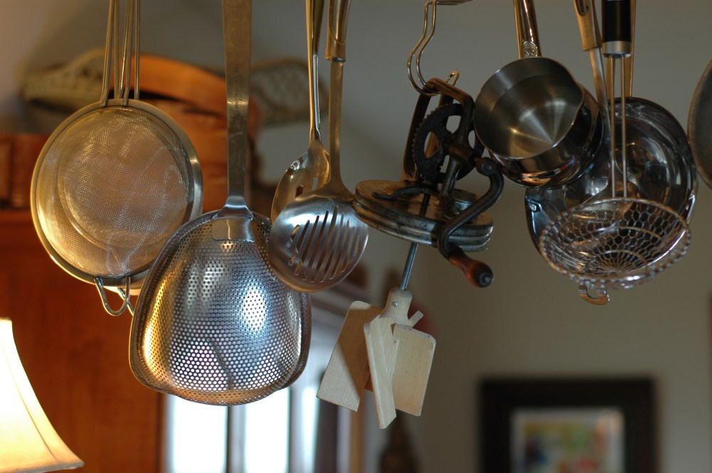 You can make butter in your Kitchen Aid or Food processor. I have done both with success, the only thing to watch for in the Mixer is that when the butter coagulates, the left over Buttermilk will fly all over your kitchen walls. So pay attention. The Food Processer works very well too, however do not overfill. Small amounts at a time. I will use my new Butter Churn. Here are the blades hanging to dry.