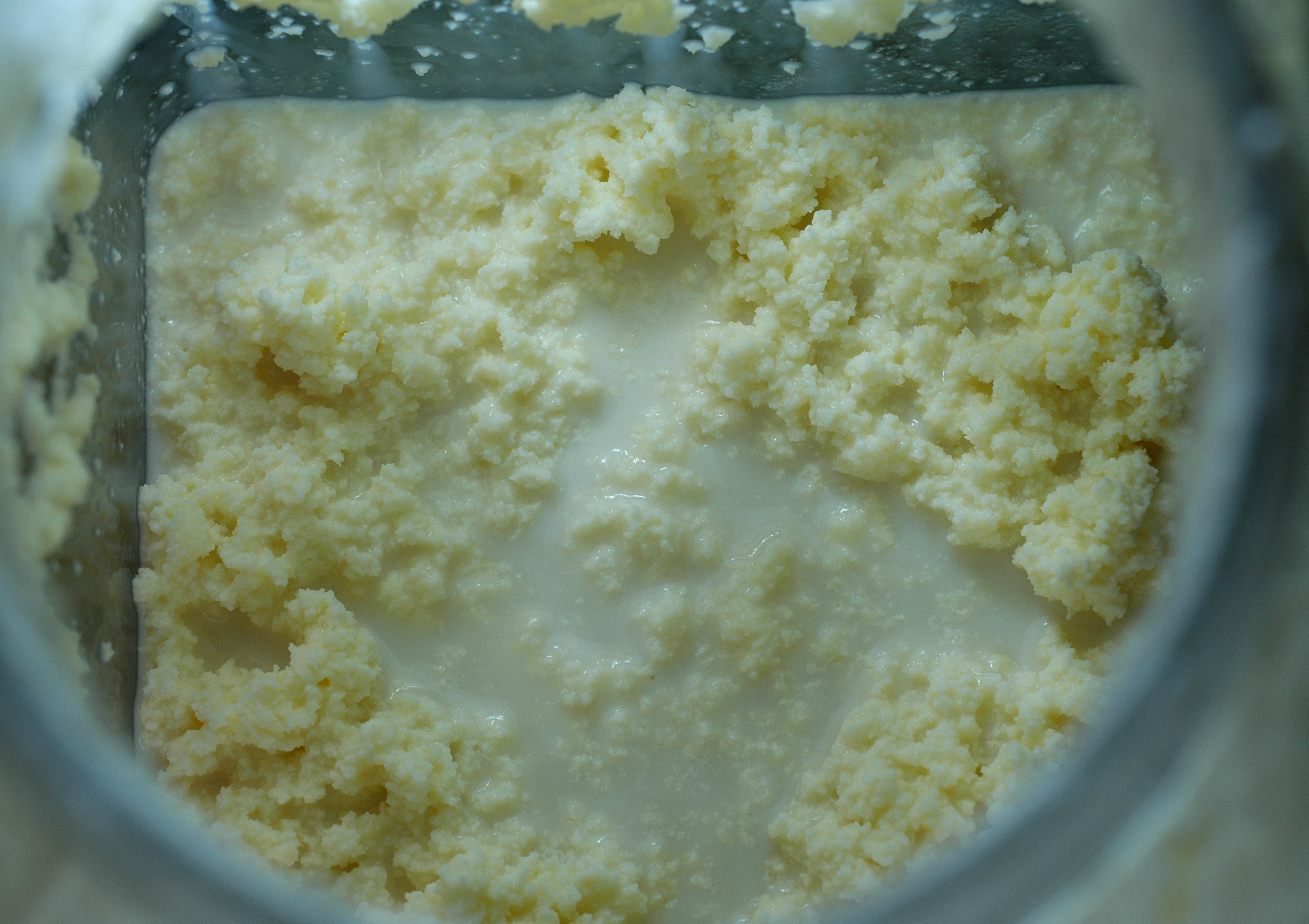 There. You can see that the butter is very seperate from the buttermilk. Now, strain through a cheese cloth. Keep the buttermilk for pancakes.