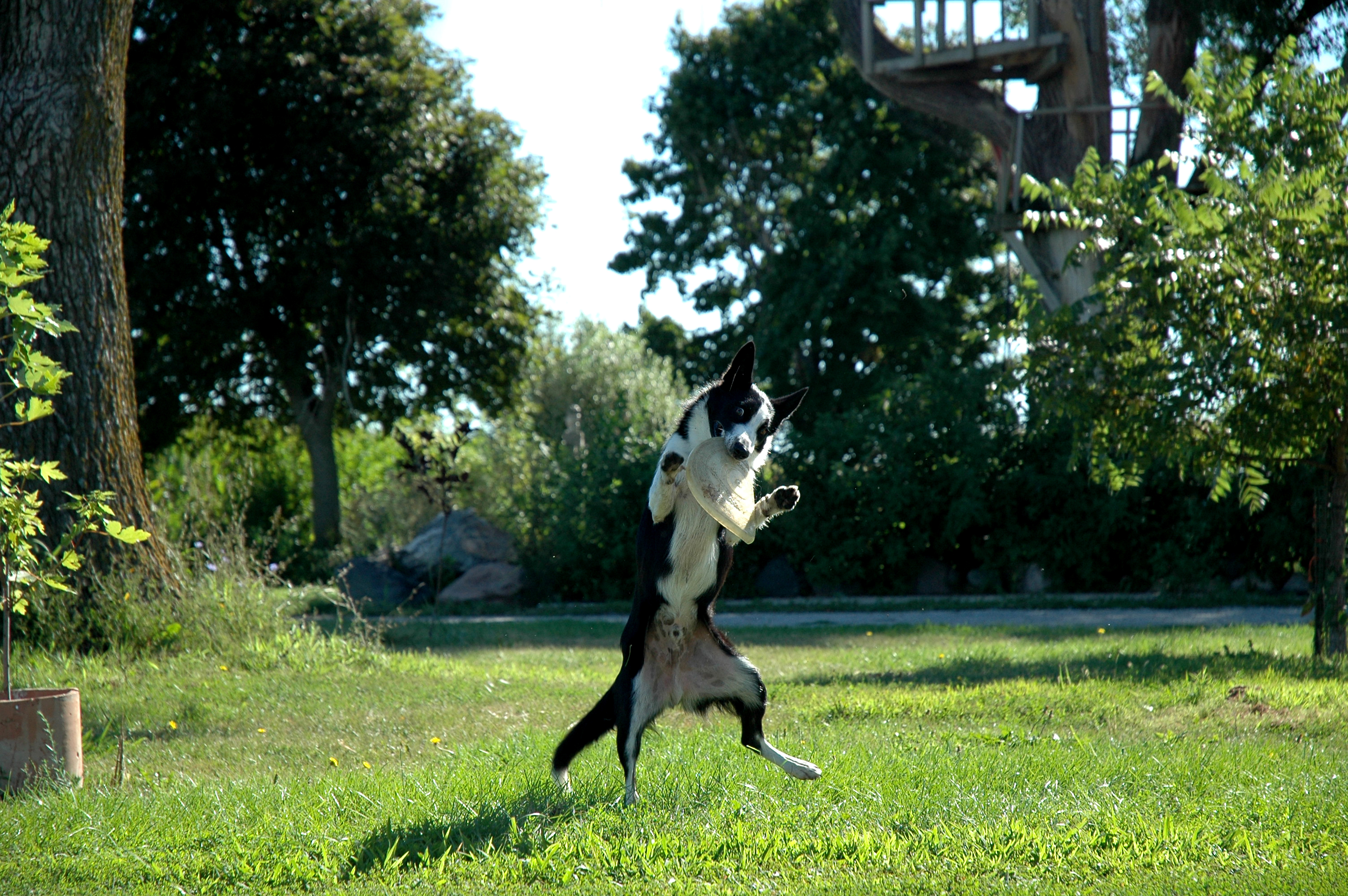 She has promised me very sincerely that in 2012 she will not laugh at TonTon anymore when he is catching his frisbee. After all the wee doggie is happy with the frisbee.
