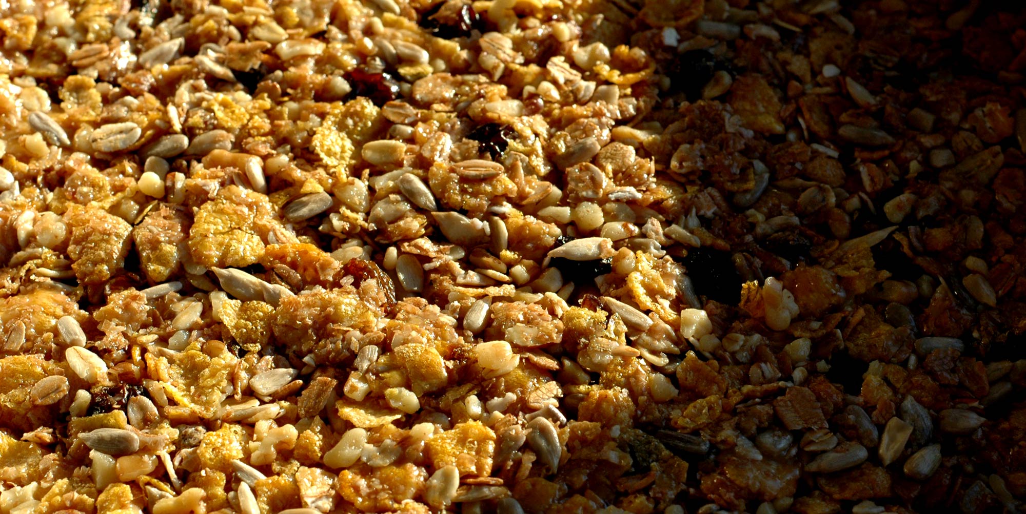 Mix all the dry ingredients in a big bowl, I took out the sesame seeds and added walnut and flax seeds. Then boil the butter and sugar mixture until it begins to pull away from the sides. Be careful or you really will have toffee. We boiled and stirred for 4 minutes. The Matriarch made the mistake of stepping through the door at this very moment and very kindly took over the stirring as it needs to be continuously stirred, and I still had the floor covered in grocery bags.
