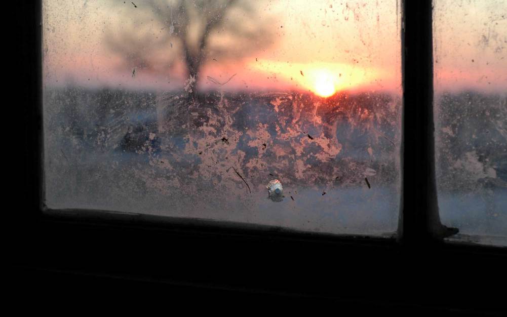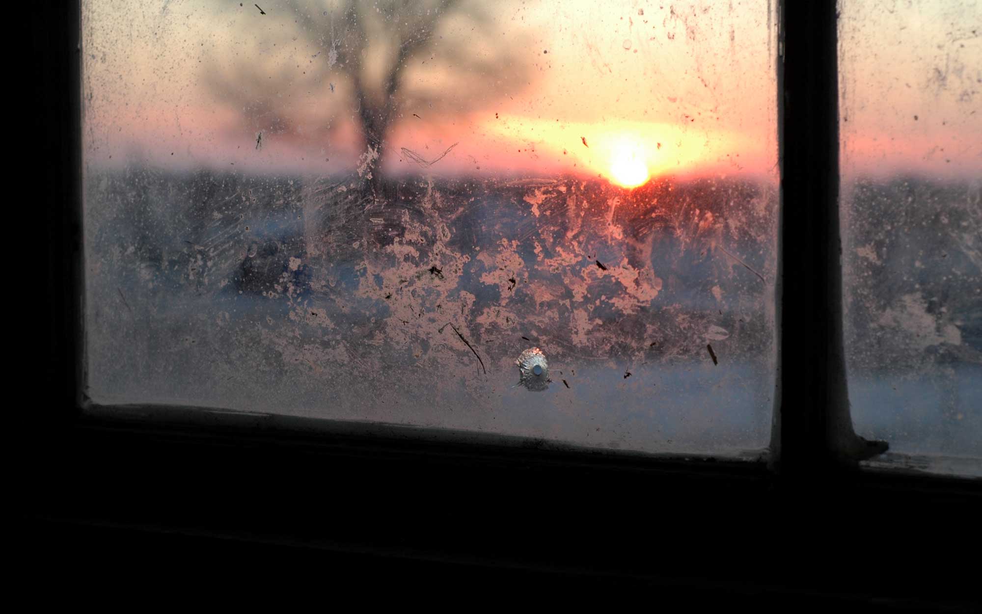 Is this what I think it is? I took this photo tonight.  And I swear I have never seen this hole in the glass before! Is this from a gun? A rifle?.