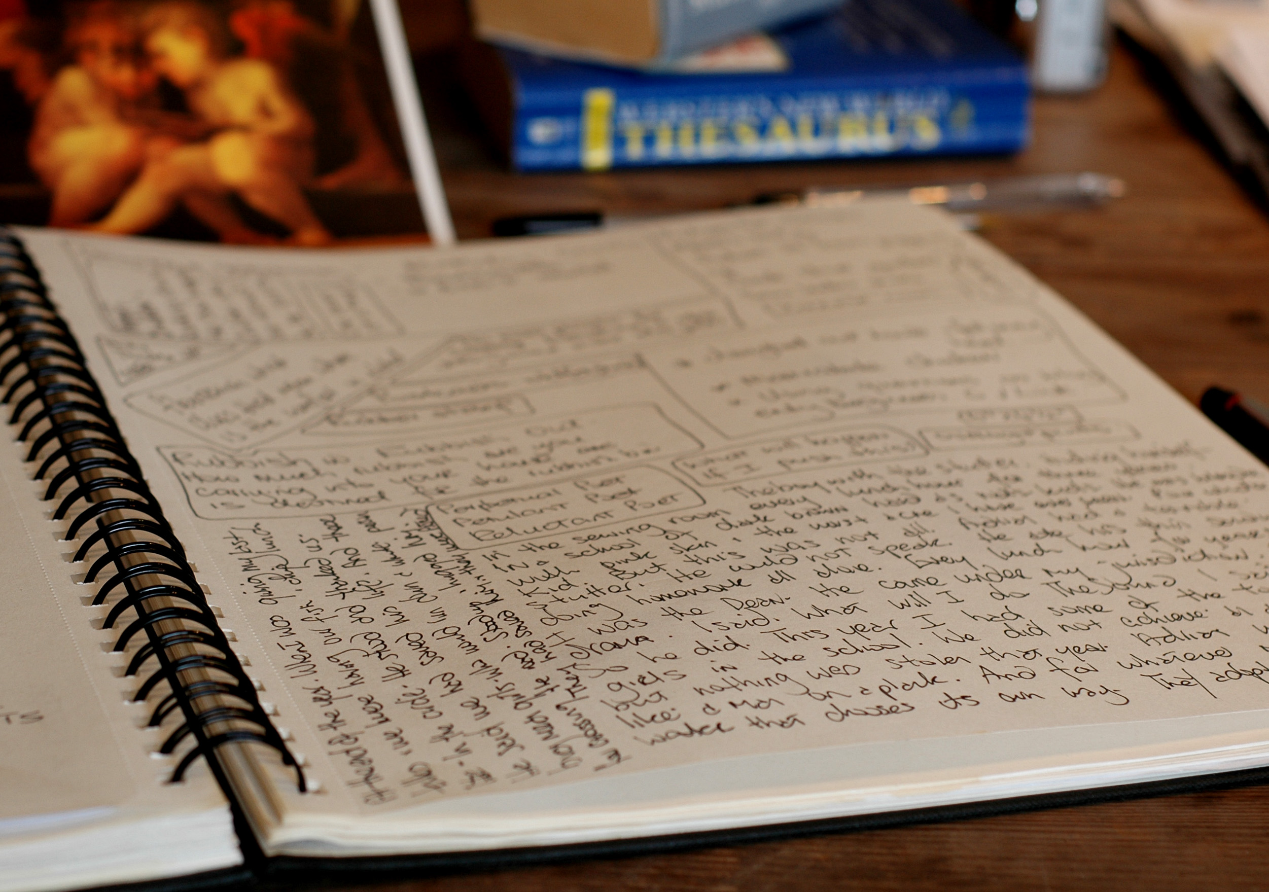 Only just sitting down! I really like the page in your notebook totally filled with your writing, hopefully the interview will let us know of you do a lot of writing in longhand?
