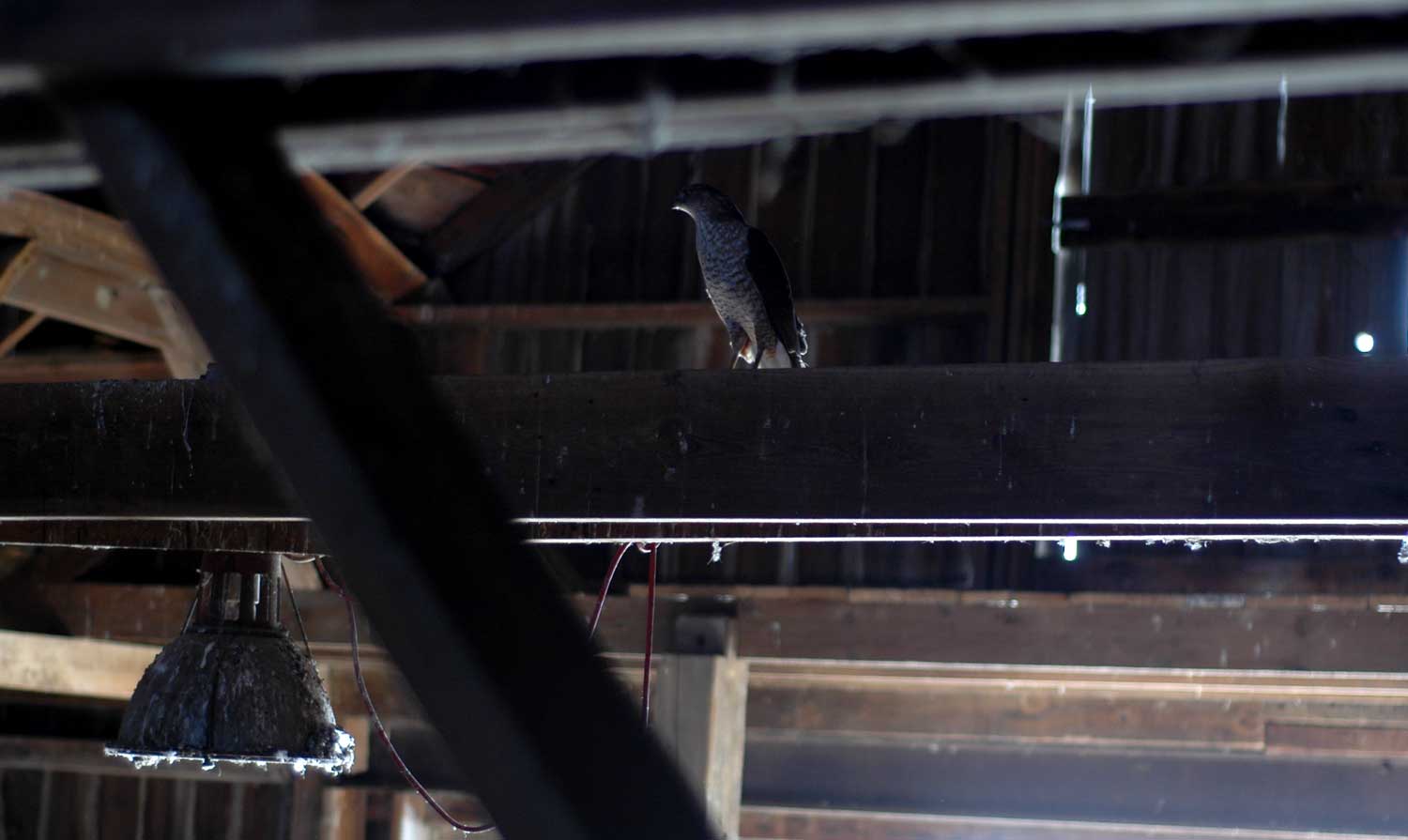 There is very little light up that high in the barn.  I am sitting on a kind of cat walk very high up in the eaves.