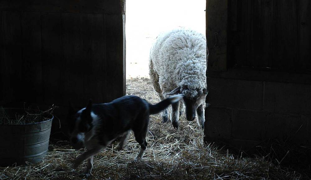 So I gave in and led her back to the North pen with her Mother. And we waited out the storm in the barn. Mia took up her life’s work again and gave TonTon the hurry up.