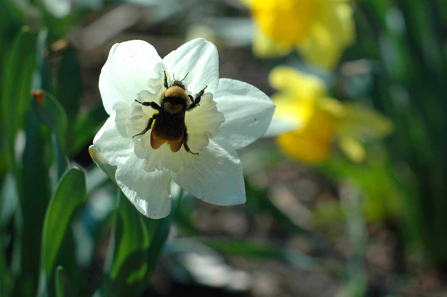 As though the bumble bee was going to eat the daffodil! He just looks big and bumbly. Not attractive.