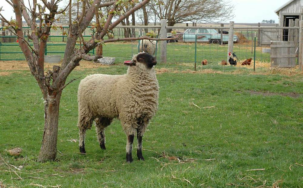 Here is Mama last year.  Such a difference from the overly burdened shaggy calm sleepy sheep we are Not Looking Directly At in the hope that she will have a few lambs while we are Not Looking.