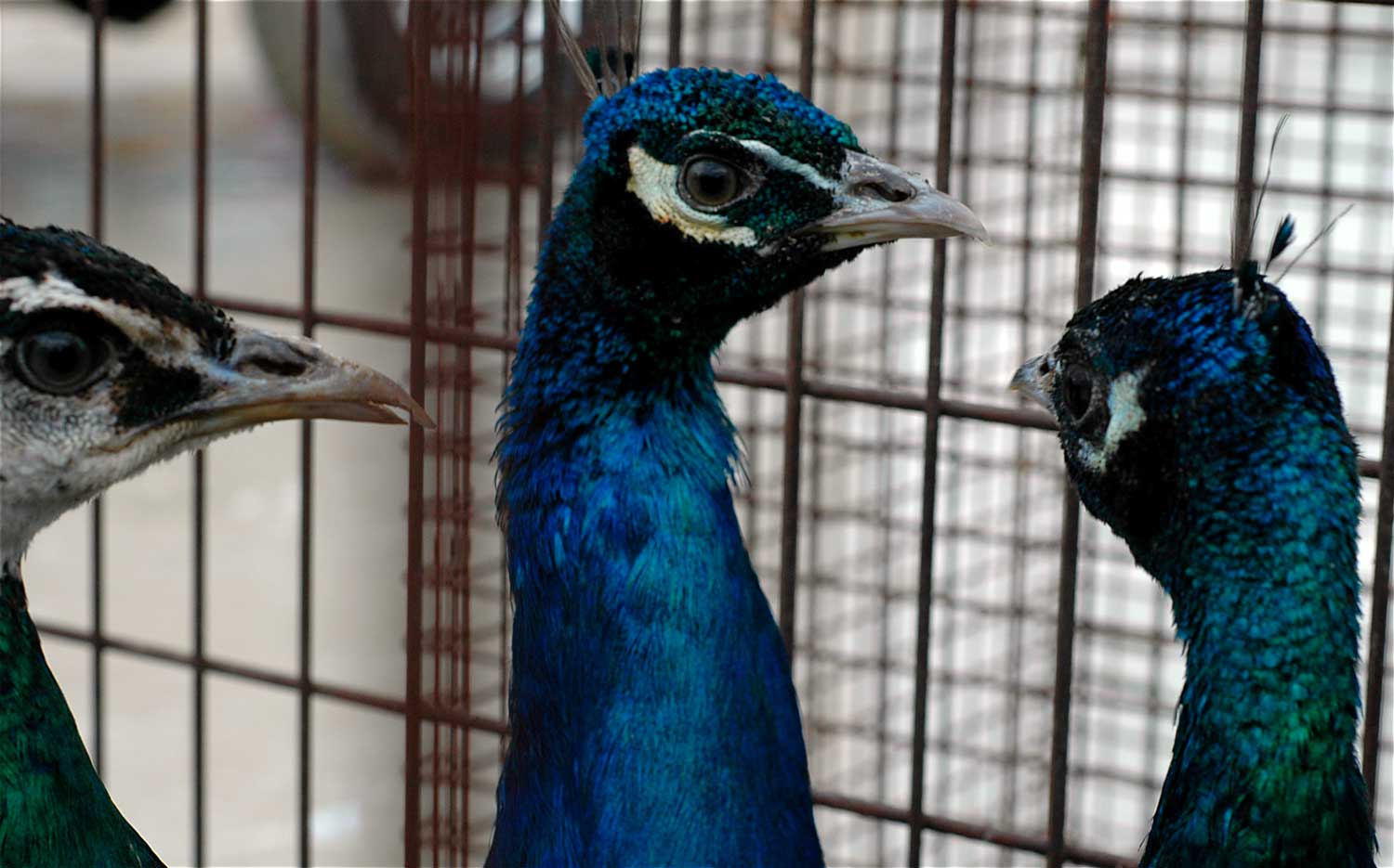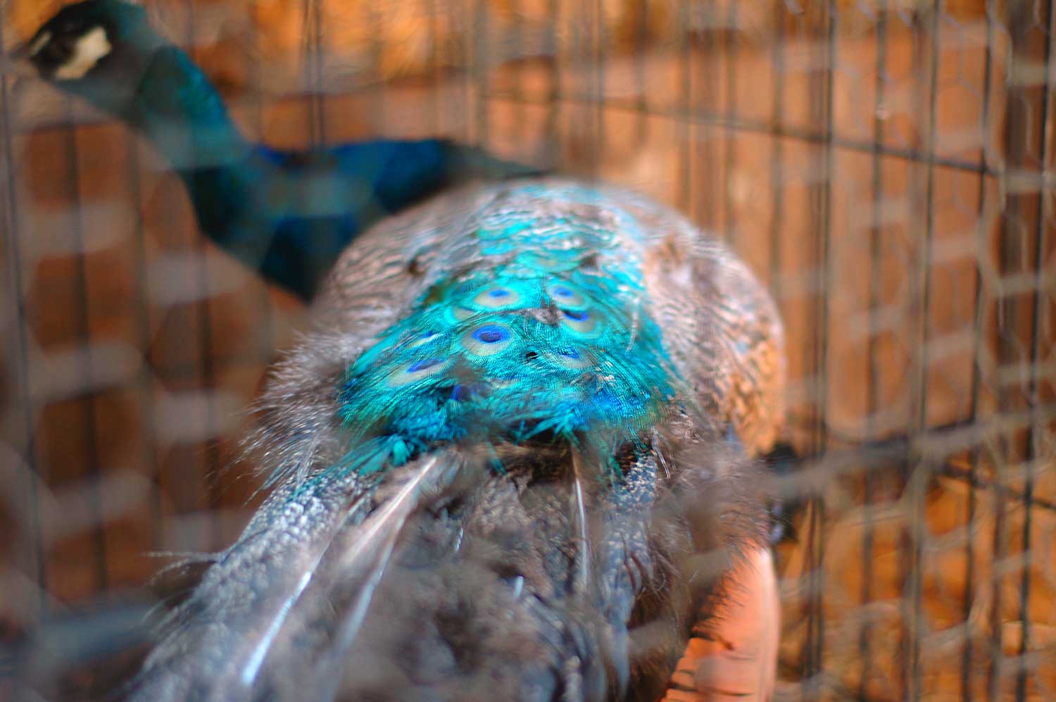And then I saw Kupa. He was in a cage with three other male peacocks. And he watched me watch him and ducked with my every movement as I circled his cage taking photos of him. He and his men stood amidst the baying of goats and screaming of pigs, the clucking and squawking and screeching of chickens, the shouting of men, the wild laughing of children, the squelch of mud, the honking of ducks and the gobble of turkeys. This cacophony of hysteria. A man walked past carrying a screaming piglet. Screaming at the top of his lungs. The peacocks just stood and watched. Still.