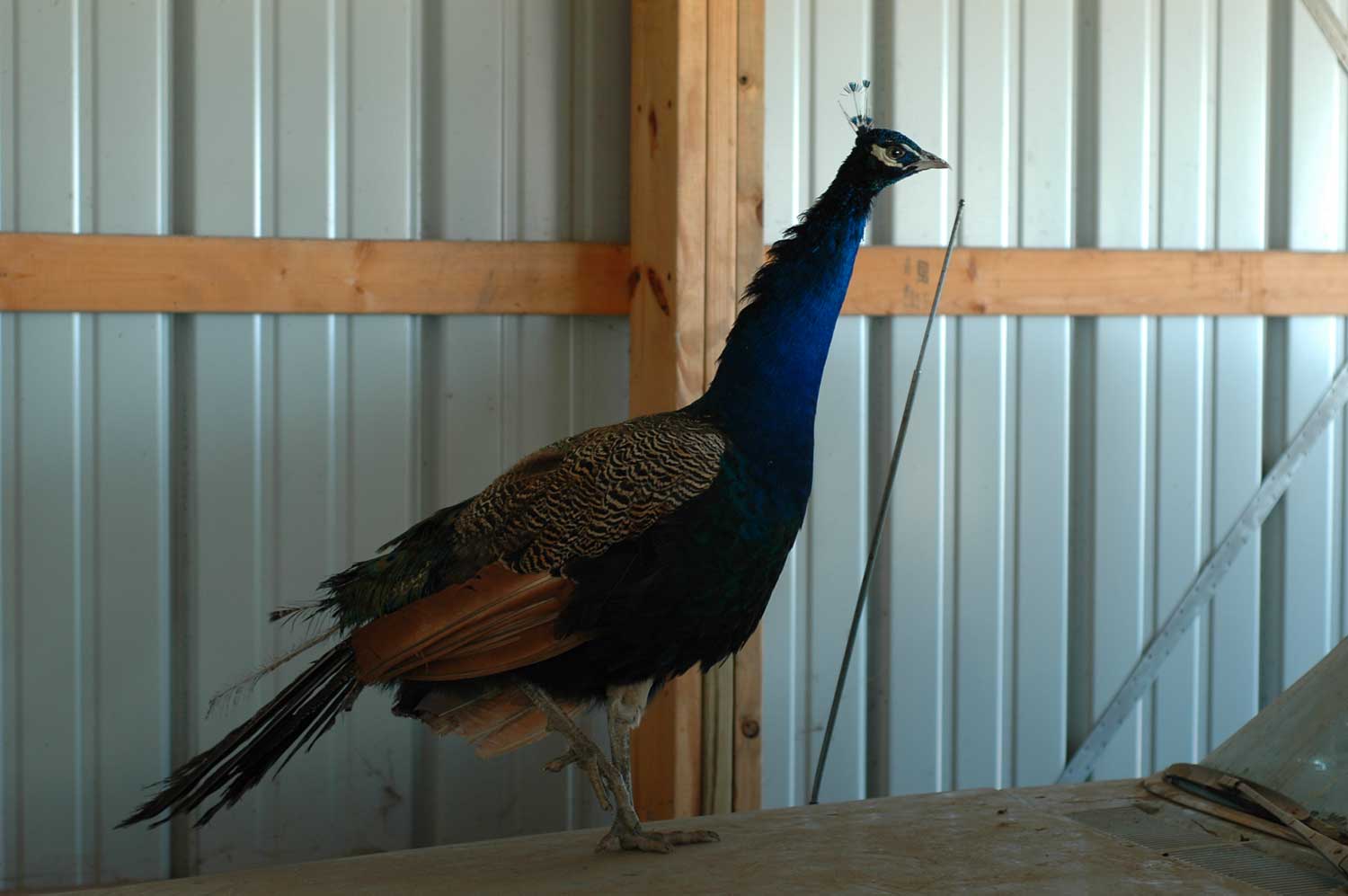 Yes I am talking to you. You naughty peacock. Now, Kupa, stop that immediately and get off that car and get back to the barn. Peacocks do not belong in garages. Garages are ugly.
