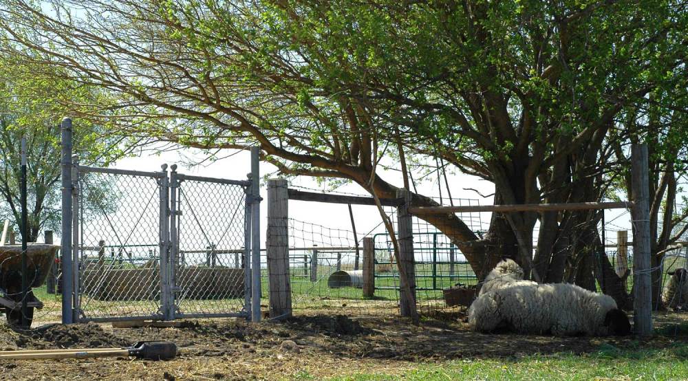 When people come to visit they like to lean and watch the large animals graze. Or sleep. Not the visitors the animals. This is such an awkward shot of Mama with Hairy through the fence behind her. But the gate is great! Daisy cannot undo this latch.