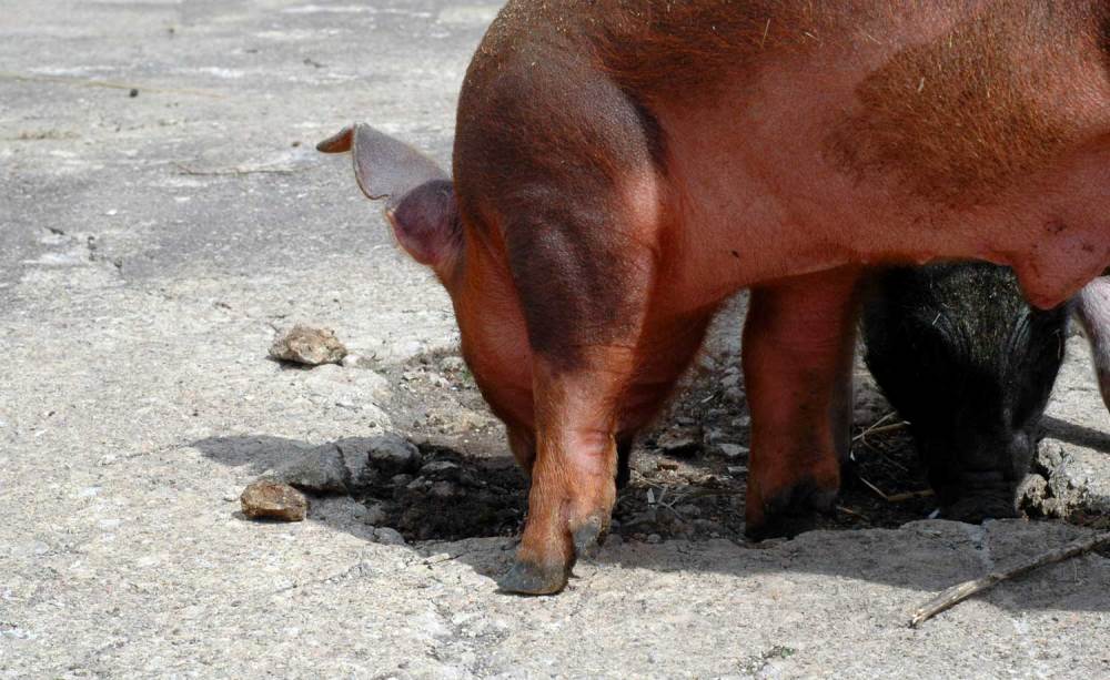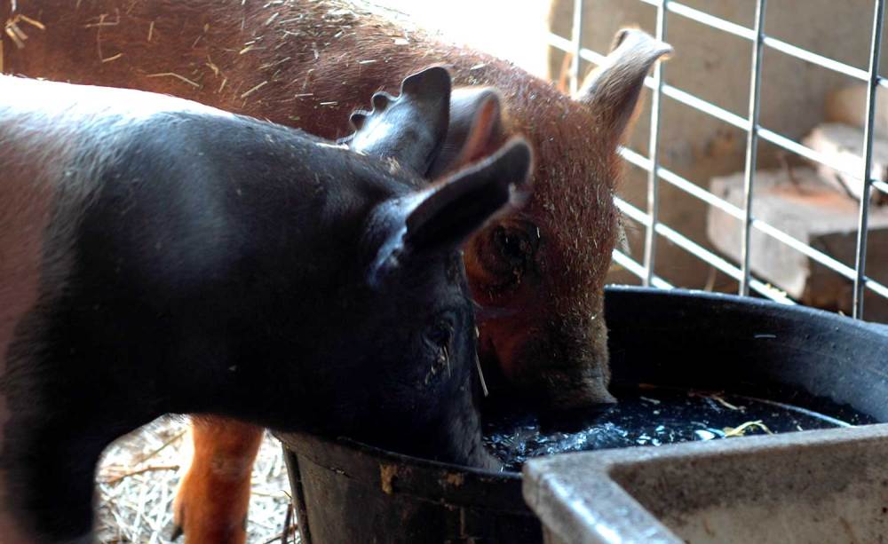 I wonder where they got this as I bought them from a farmer who has many hogs and certainly does not give each pig a four foot deep bed. When I went to check them last night all I could see was a brown snout and a black snout poking up like periscopes up from the bedding.