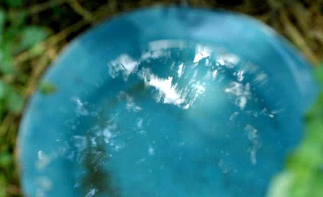 Some of the bowls and buckets are deep, some are shallow plates and platters. Sugar bowls and cups in the trees. Every day when I water the pots and plants, I refill these little oasis with fresh water.
