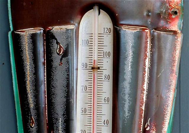 But it was so hot yesterday, hovering just under 100 degrees, as the Coke Bottle temperature gauge will prove.