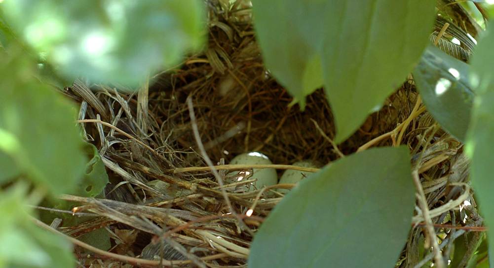 Mrs Cardinal was on a smoko break.  There are three eggs.