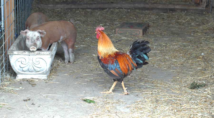 Peghorn is getting very fat and shiny on baby pig food.