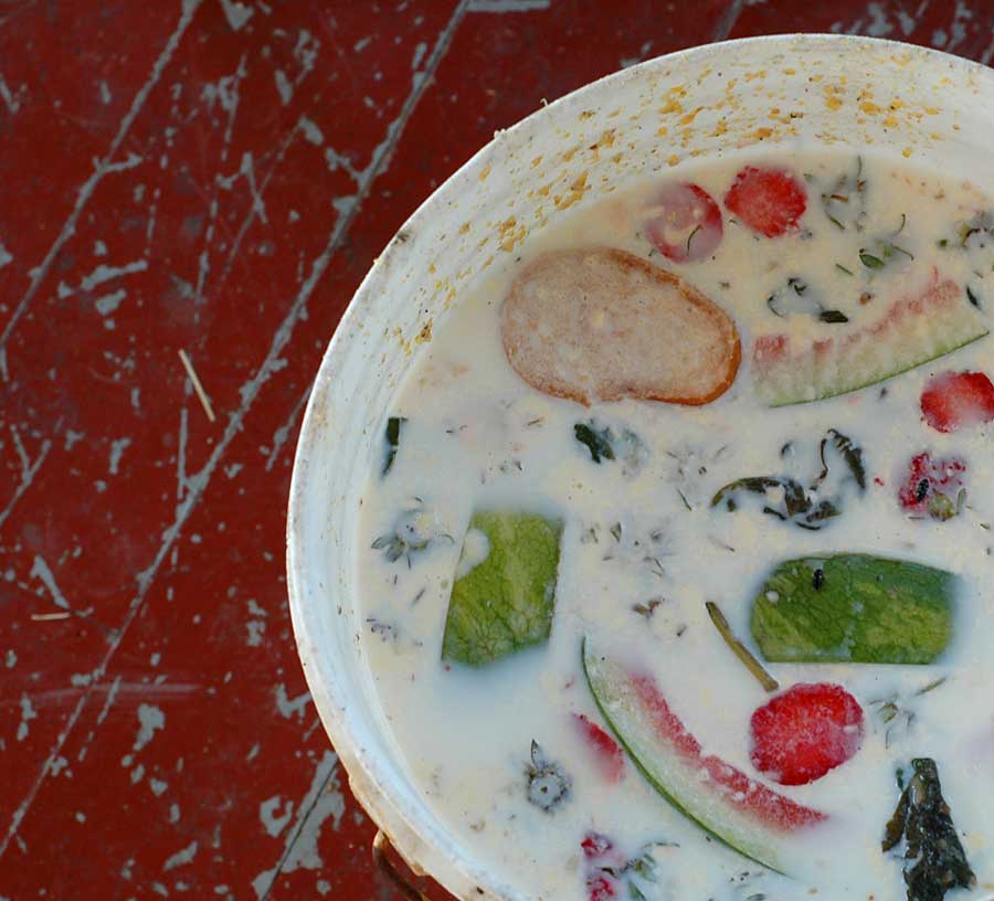 While I was drinking this delightful concoction I looked at the pig bucket, waiting patiently to be carried out  and realised it had the same ingrdients, but with a little bread and watermelon rind and of course no brandy. Pretty similar though!