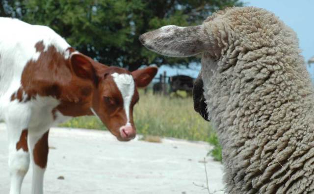 Come with me. You can share my lunch. If we stand at the little gate and stare at the kitchen door and bleat for a while miss c will bring it. Can you bleat like me? Well, just follow me then. She always gives in. You just have to be perses.. psersis.. presisty.. You just have to do it lots! Man you are pretty big for a little fella. Are you sure you are only two weeks old?”