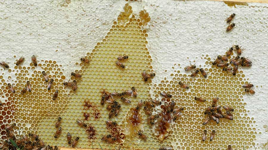 The bees are still working on some honey for the kitchen. But they all have three supers full of brood and honey. There is a lull coming in the flowers as the fields dry up and they will need honey for late summer as well as winter so I am pleased to report that they all have three heavy full supers of honey and brood. Two is usually adequate. In autumn if we get a little rain there will be flowers again.