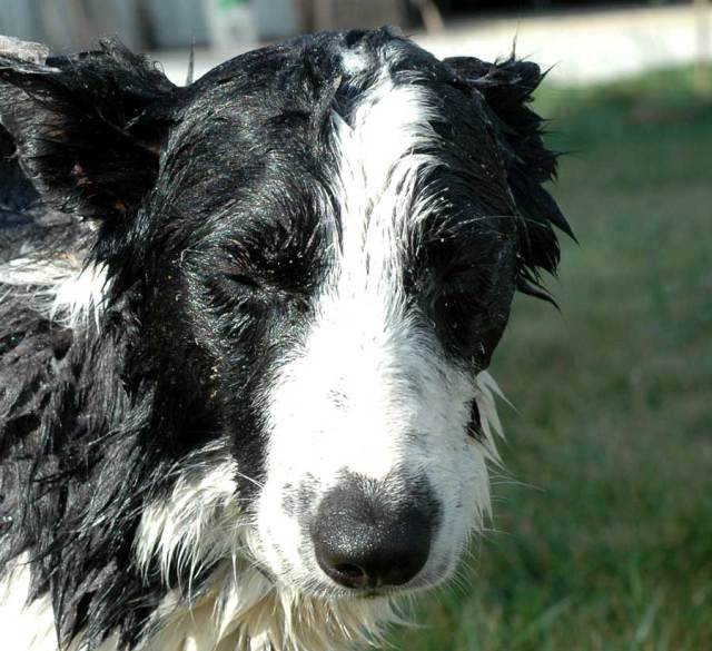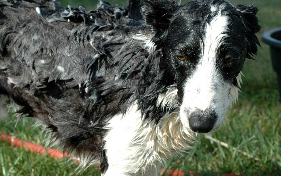 And tons of rinsing. There was a wee bit of hiding under the car, but generally he is pretty good about having his bath.  And will stand without shaking. And stand to be rinsed.