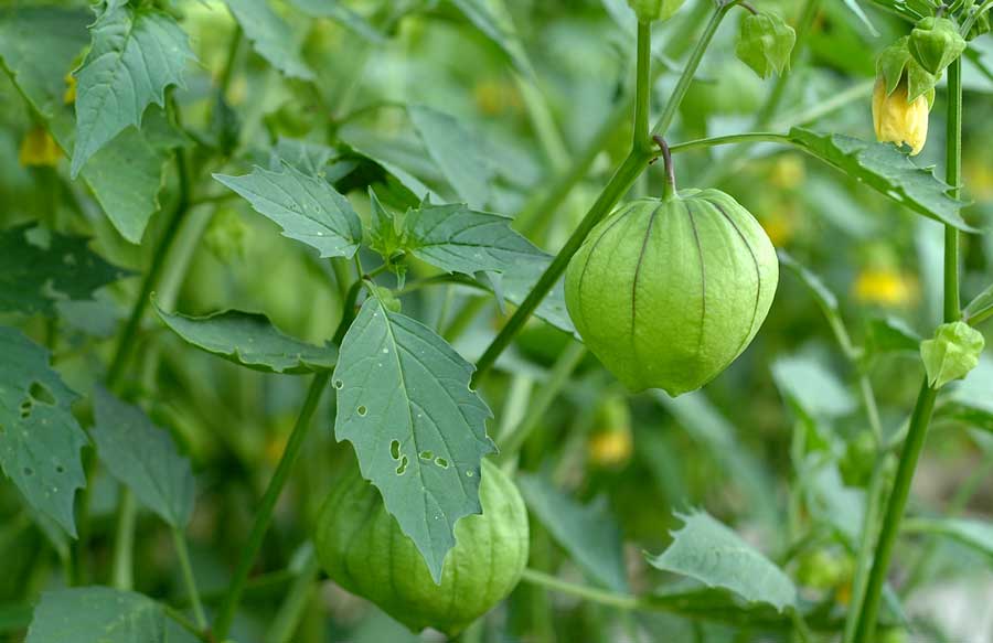 good questions though.. the green one is a tomatillo, inside that papery lantern is a tiny green tomato, they are great in salsa and the long black fruits are a variety of eggplant, or aubergine as I call them. c