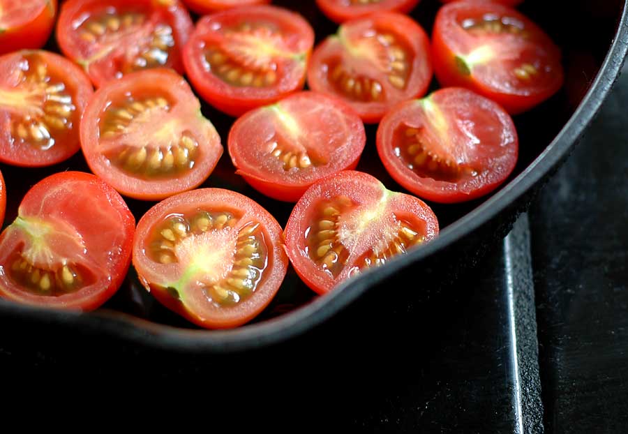 I had a little pastry left over from making a steak and onion pie. So I thought I would have a go at making a Tomato Tart Tatine.  I had seen one some where back in the winter but I can’t remember where. But I thought I  remembered the method. So I picked and drained some little cherry tomatoes. The computer was off and turning it on then waiting interminably for it to boot up would take too long.  So I made it without a recipe. How hard can it be I thought. So I arranged the tomatoes in the cast iron pan with a little olive oil. Pan fried them on high for a few minutes. Then a  little seasoning, a little torn up basil.  Tucked it all into bed with a blanket of  pastry on top.  Glazed the top which will become the bottom and salted it lightly with sea salt. Tomatoes love salt.  Then baked in the oven at 375 for 30 minutes. It rose, puffed up and browned and smelt lovely. I put a plate on top and quickly flipped it over and voila!  A fabulous failure. A bright, colourful, tasty flop. Oh dear. Maybe I should have looked up the recipe after all.  They say a little knowledge is a dangerous thing.  Good morning. I am on the look out for little moments of restfulness today.  It is Sunday here after all.