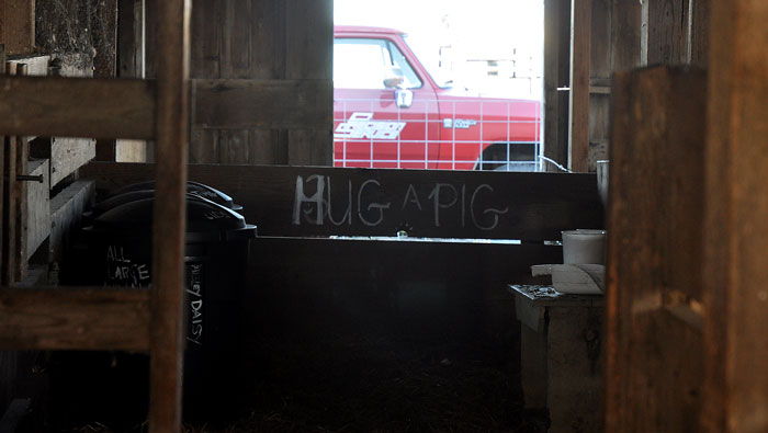 I did not like the number 13 on the pigs gate. It was one of the gates out of an old hog shed. We bought them from the junk man the other day, do you remember?