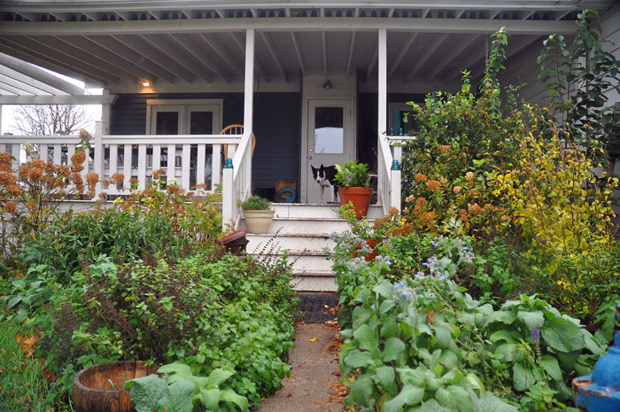 Here you can see, just to your left of the steps, where I stand to take the shot of the Daily View. I had better cut some of those plants back from the path. We are having a growth spurt with all this warm rain.