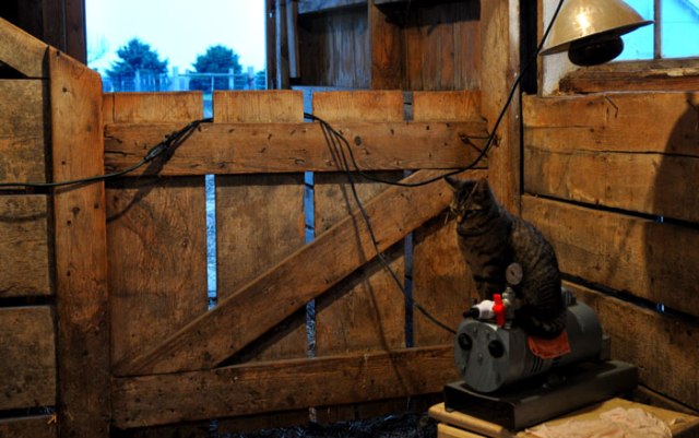 L’il Puss The Scrapper’s bottom is kept comfy. He has very generously offered to keep the pump warm for me after the milking. He is good like that.