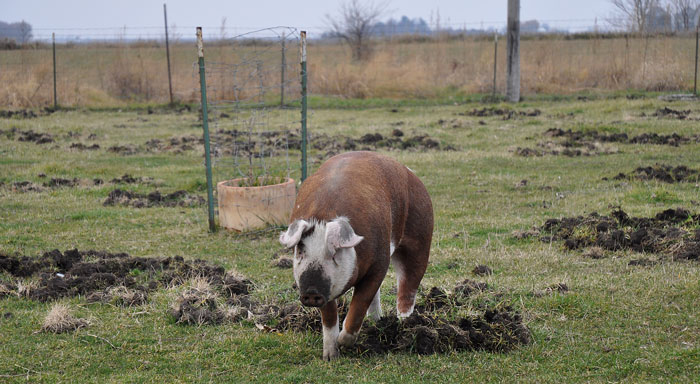 She is not going to be pleased when this is field is turned over, and resown next spring, and she will not be allowed in here for another five years. How long does a pig live anyway?