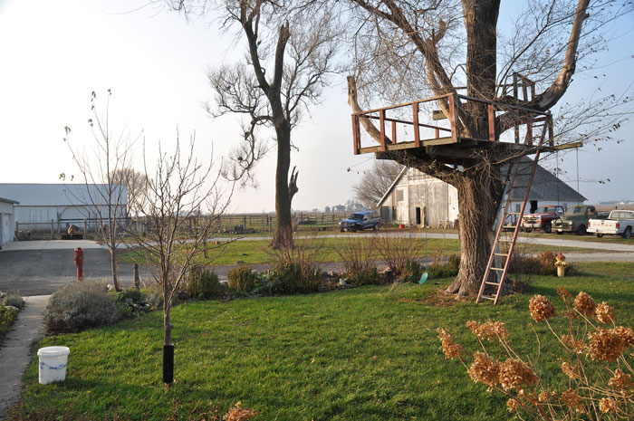 I climbed up into the tree house to see what I could see and discovered that there was even less to see from there now.