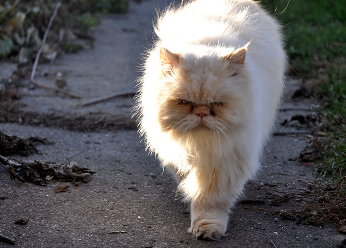 White cat prefers the concrete footpath. Can you see how he has actual cat fur on his paws, in the winter he walks about on four thick little cushions of fur. He is an Himalayan cat. He and the sheep are the only ones on the farm who are actually designed for brutal cold. The irony is that he is the inside cat, due to his extreme age. He keeps reminding me of how old he is too. He and Big Dog were here when I arrived.