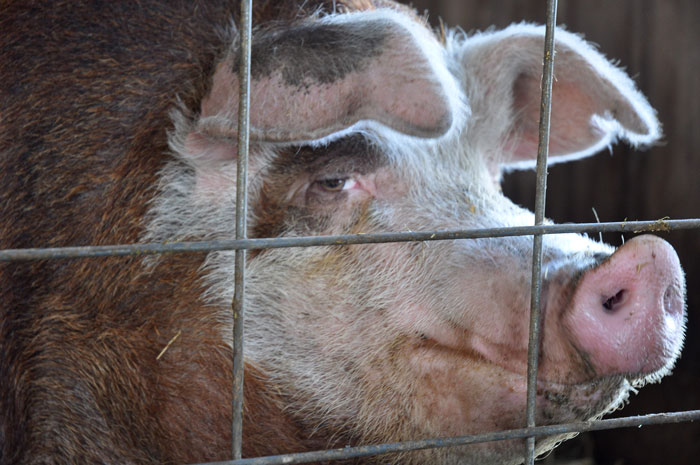 Sheila my big fat pig who is not so fat anymore now that she is up and about in this better weather and on her new slim show pig diet is the most wonderful Auntie to Poppy. But she still tries to make a little time for me. She is getting to be an old pig by commercial standards. Almost three years old now.