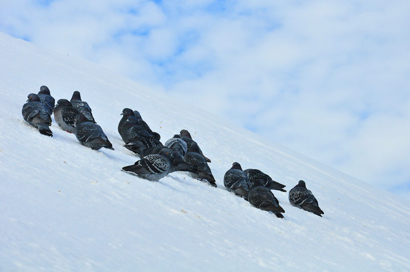 Your bird photos always make me want a yard full of Peacocks! They’re so neat looking and Godot is breathtaking. I’m afraid my dogs would make it very stressful for them though. Love the pigeons on the snow. Very pretty. It was in the 50’s here today. Crazy weather!