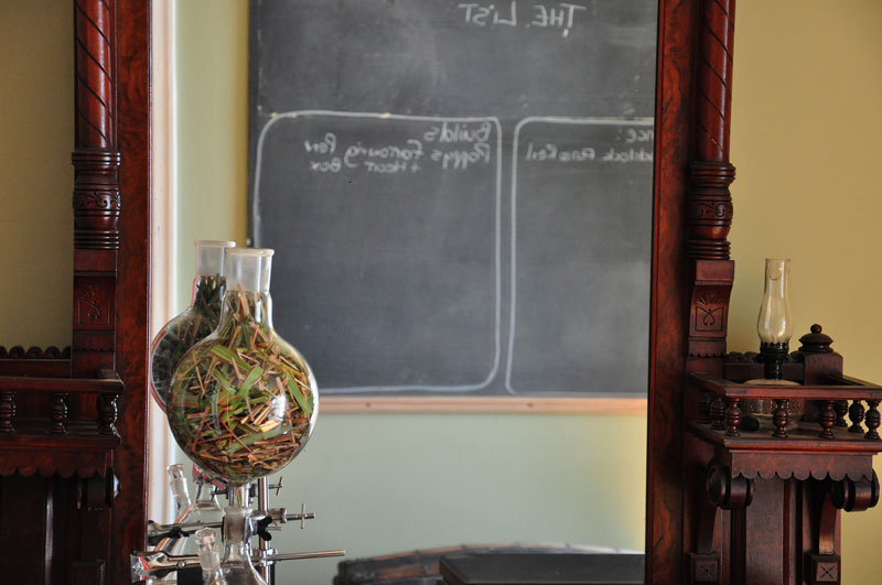 So while the lemongrass steamed itself into oil for soaps, I began to make the Big List. I love black boards. Almost as much as I love lists. When the summer toilers begin to arrive they can check the board for what they are to do. And in the meantime I will note all the winter maintanence that needs to be done before the summer.