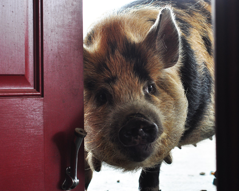 Perfect way to start my day with this post about your lovely pigs. That face in the door! Perfect! 🙂