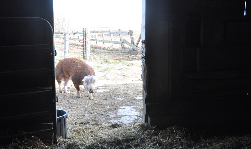 We have the promise of miserable weather on the way today.  Snow with high winds and then they are forecasting a dizzying plummet  in temperatures  (the drop in temperatures  is more of a worry than the snow which may not reach us though BLOWING snow can cause difficulties).  So I worked in the rain yesterday to get all the heated water buckets set back up for severe cold.  Water for the pigs is a challenge on frozen days.  The big old  doors ready to pull shut in both barns. The last of the manure was shovelled out of the barn and onto the piles, some of it I used to block the worst of the gaps where frigid drafts whistle through. Two gates needed fixing and a window replaced. New straw spread onto the cows beds, the chickens got extra straw, Tane and Tima (the kunekune pigs) had their room fortified so they could get right under the hay, Sheila got extra straw with which to make her own bed – though she still will not share it with the twins. So filled that bed up too.  Poppy had the last gate hung in the outside area she shares with Manu so they can get to their insulated water trough – which I further insulated with wet straw (the weather will freeze that solid today).